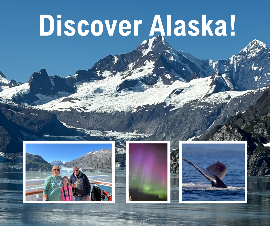 Join us, Cheryl & Jim Howard for a free Discover Alaska Travel Talk, at Waukesha State Bank’s Community Room, in Mukwonago. We will be sharing tips and insights on how to experience the beauty of Alaska, whether by land or sea. Special cruise offers and door prizes. Get ready to explore Alaska!